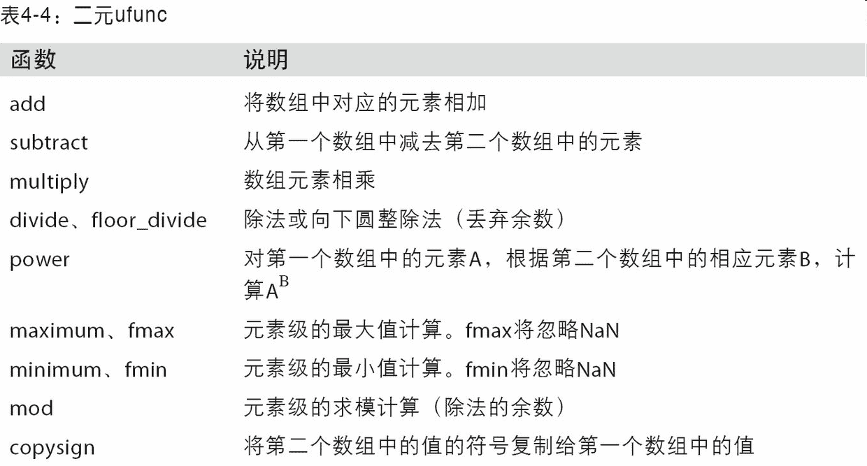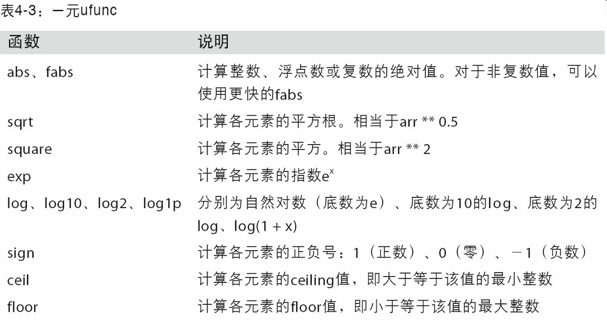 • 用于数据整理和清理、子集构造和过滤、转换等快速的向量化数组运算。